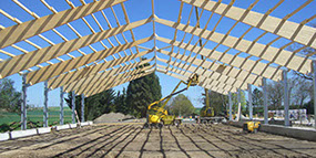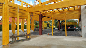 Es werden die gesamten Holzbauteile in "Zimmermanns-Qualität", sowie leicht verständliche Pläne, incl. der Statik für die gesamte Konstruktion und für die Fundamente geliefert.