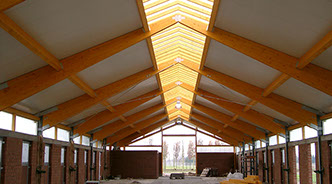 Er eignet sich für Dachneigungen über 15° und Spannweiten zwischen 10.00 m und 40.00 m. Die Wände sind außen und innen frei von Vorsprüngen, wodurch eine optimale Platzausnutzung möglich wird.