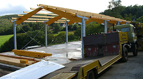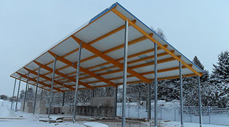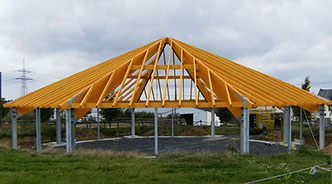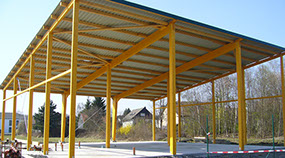 eignen sich besonders für Überdachungen und Unterstellmöglichkeiten, z.B. für landwirtschaftliche Maschinen und Geräte. Diese können über mehrere Felder verkleidet oder allseitig geschlossen werden.