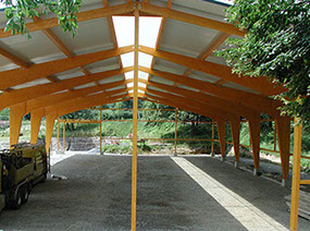 Die Holzleimbauweise ermöglicht große Spannweiten und wirtschaftlich stützenfreie Überdachungen mit flexiblen Nutzungsmöglichkeiten der Hallenräume. Wir bieten Ihnen ein abgerundetes Typenprogramm mit vielfältigen Variationsmöglichkeiten für die Einsatzbereiche: Landwirtschaft, Industrie, Handel und Gewerbe.