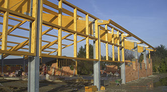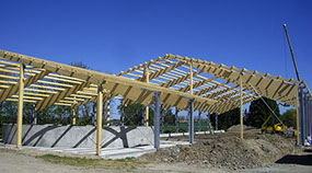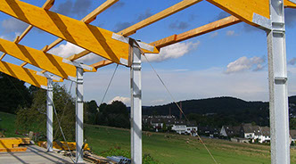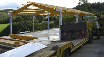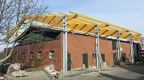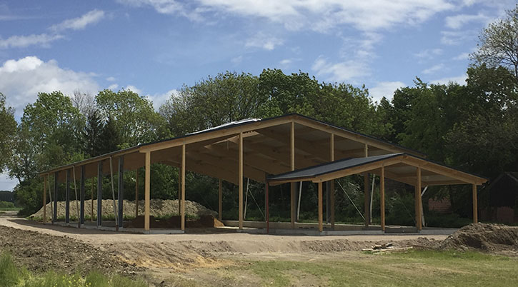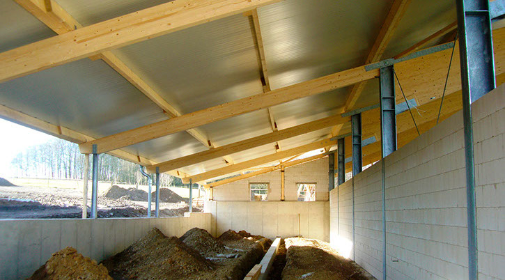 Ideal ergänzt werden kann auch diese Timmermann Konstruktion durch in Eigenleistung erbrachte Arbeiten (z.B. Tore, Fundamente, Hallenboden).