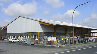 Die klare Gestaltung und ausgewogene architektonische Linienführung kennzeichnen diese Hallenkonstruktion.