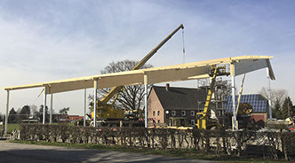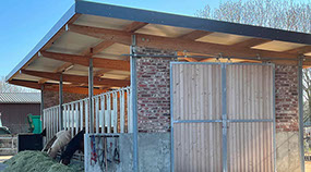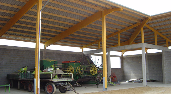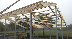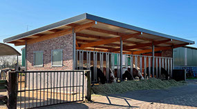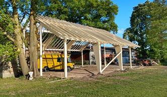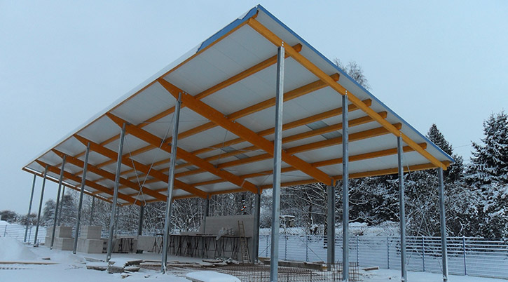 Der Typ Universal und unsere Pultdachkonstruktionen eignen sich besonders für Überdachungen und Unterstellmöglichkeiten, z.B. für landwirtschaftliche Maschinen und Geräte. Diese können über mehrere Felder verkleidet oder allseitig geschlossen werden.
