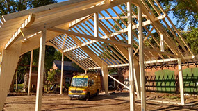 Diese Timmermann Konstruktionen bieten eine sauber konstruierte und wirtschaftliche Lösung für Überdachungen jeglichen Zweckes.